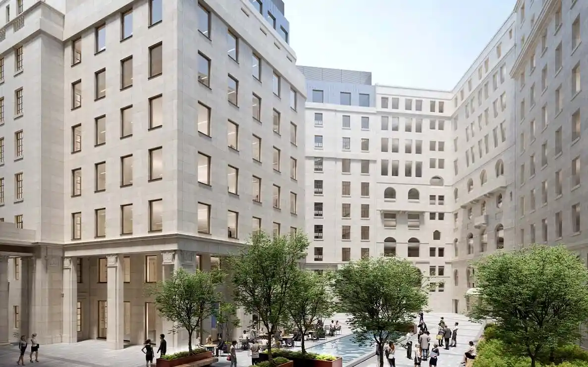 This cut and carve development will include the creation of a new pavilion structure and landscaping within the existing courtyard space, a two-storey roof extension with communal roof terrace and an extension to the existing floor plates to create an additional 30,000 sq ft NIA of office and retail space. Works will also include the part-demolition of the existing core and the insertion of new stair and lift cores, and the replacement of all landlord and CAT-A building services.